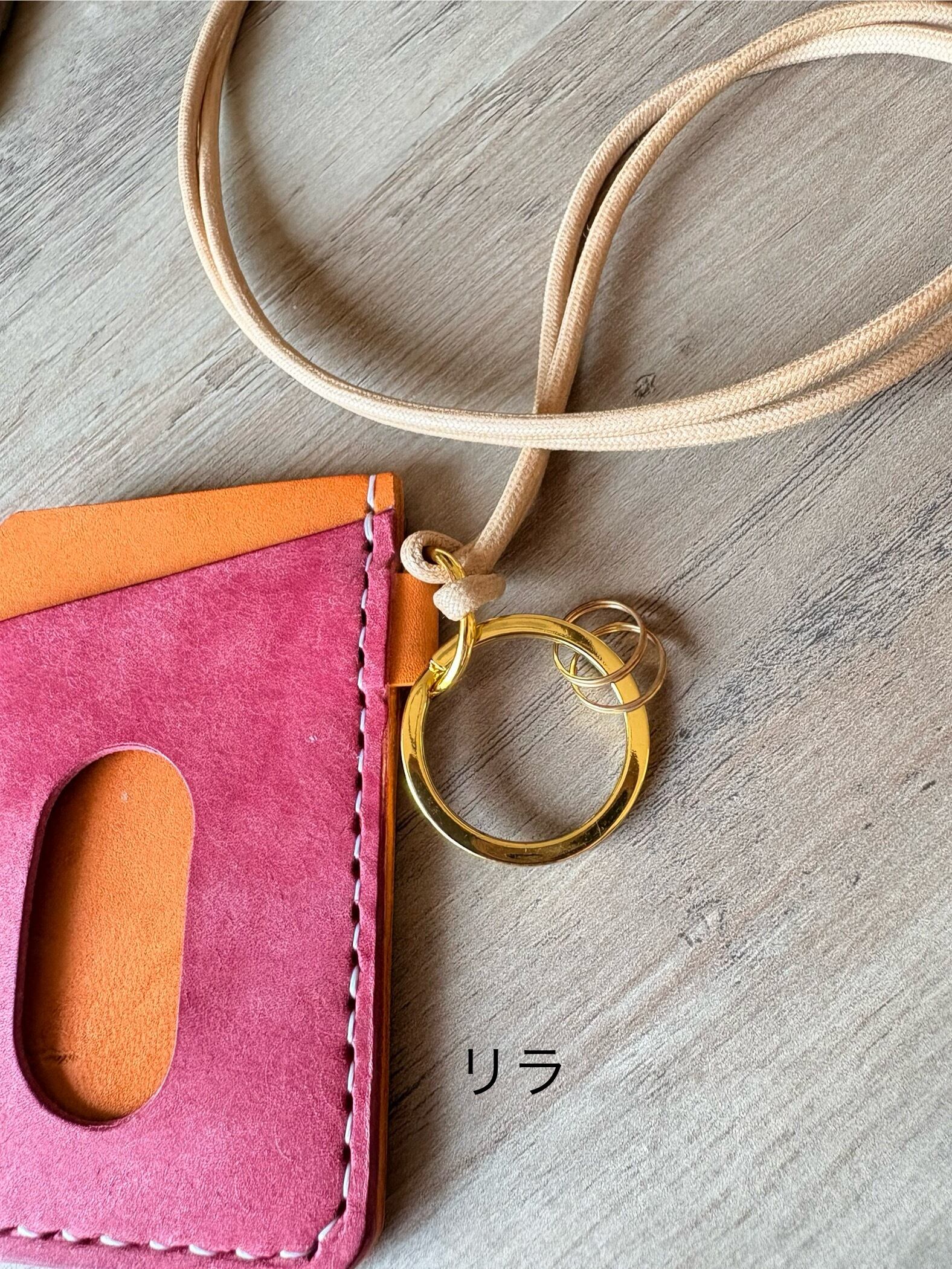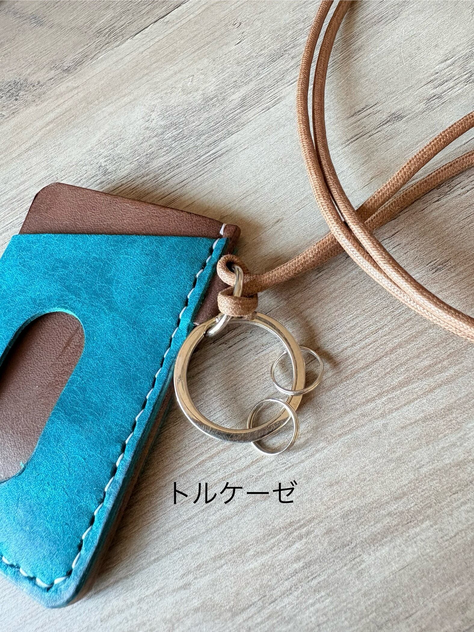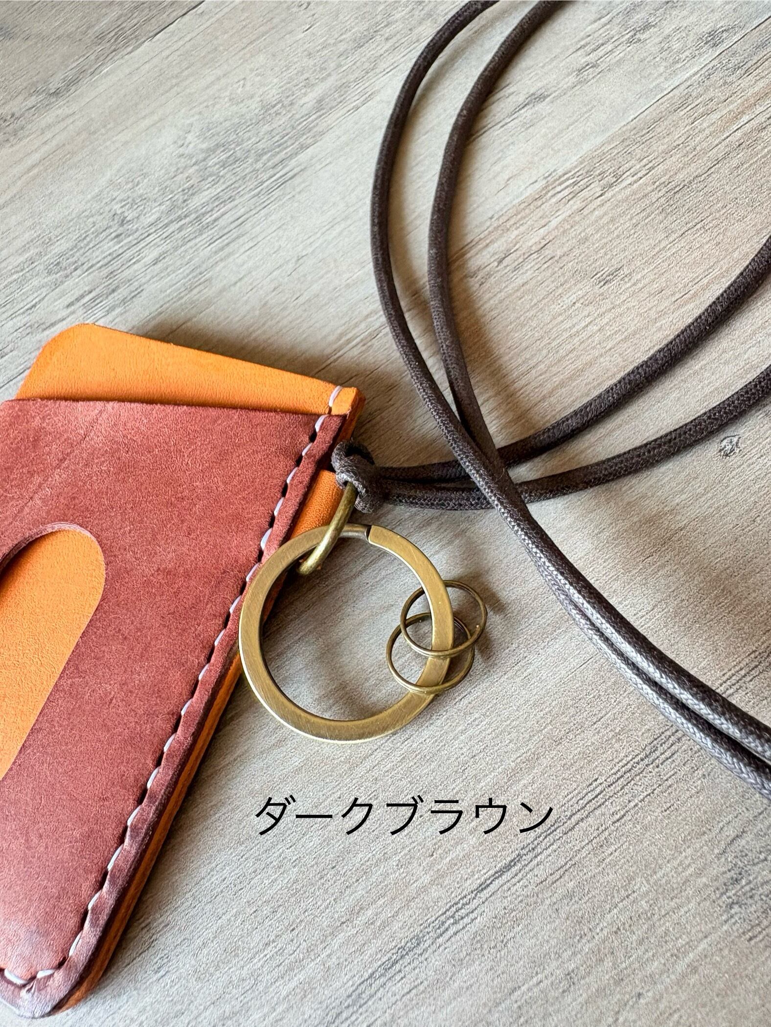 イタリアンレザーのマルゴーと国産ヌメ革を使用した鍵も取り付けできる紐付きパスケースになります。