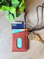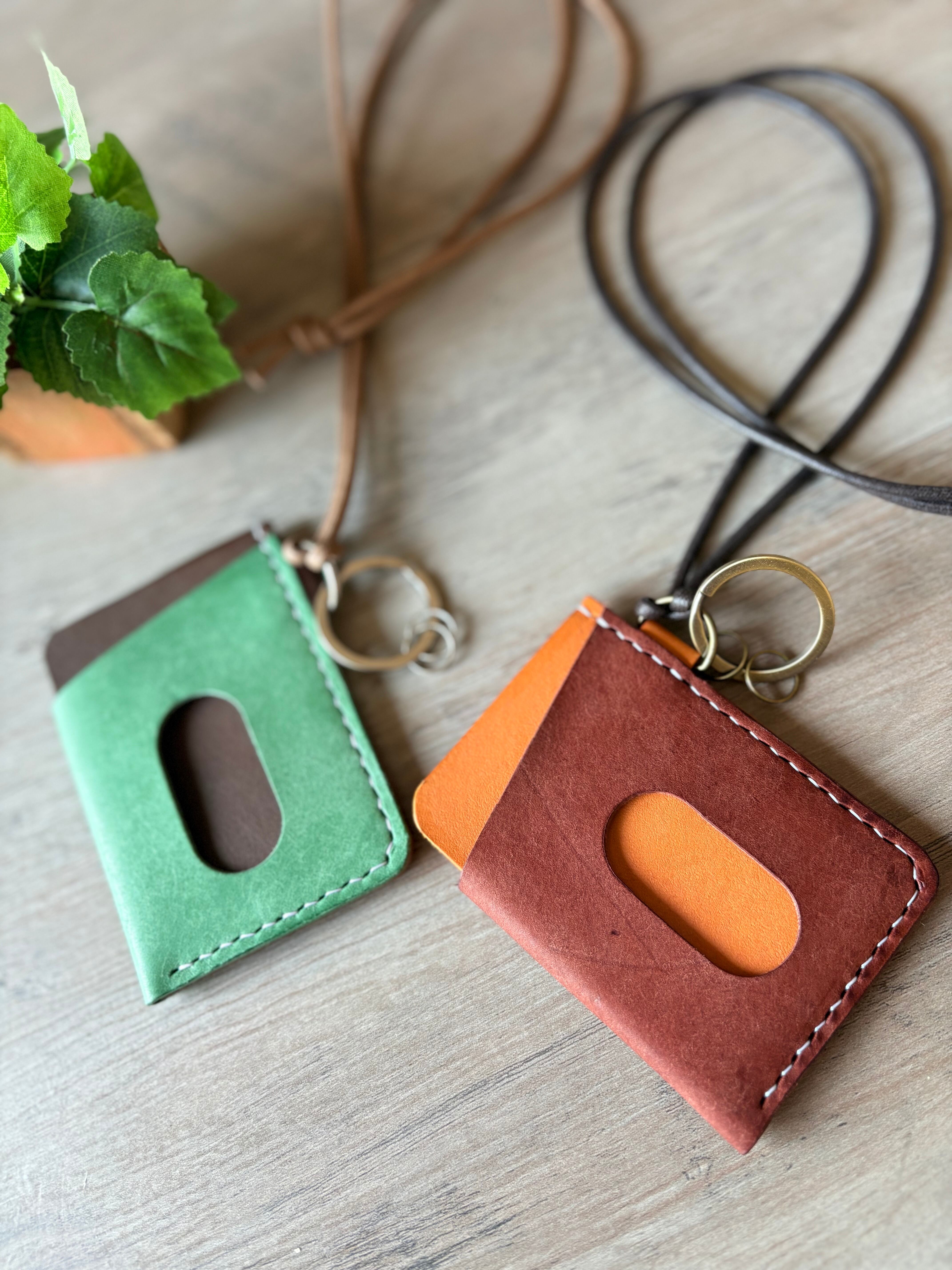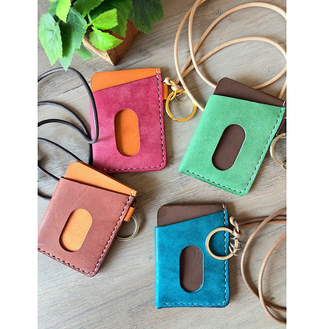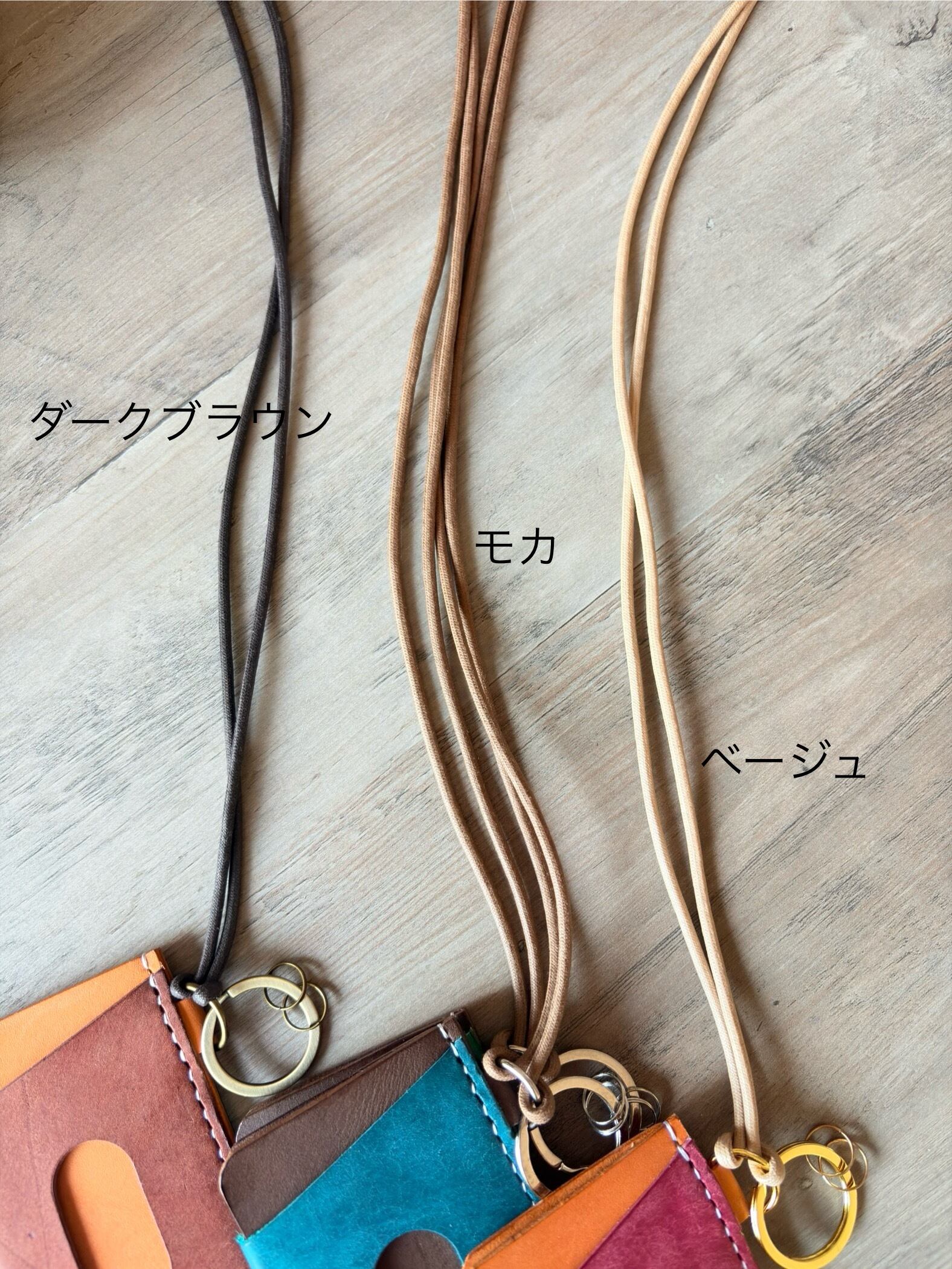 イタリアンレザーのマルゴーと国産ヌメ革を使用した鍵も取り付けできる紐付きパスケースになります。