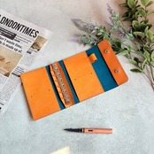 左右の切り込みポケットには名刺やカードが収納でき、ペンホルダーも完備。