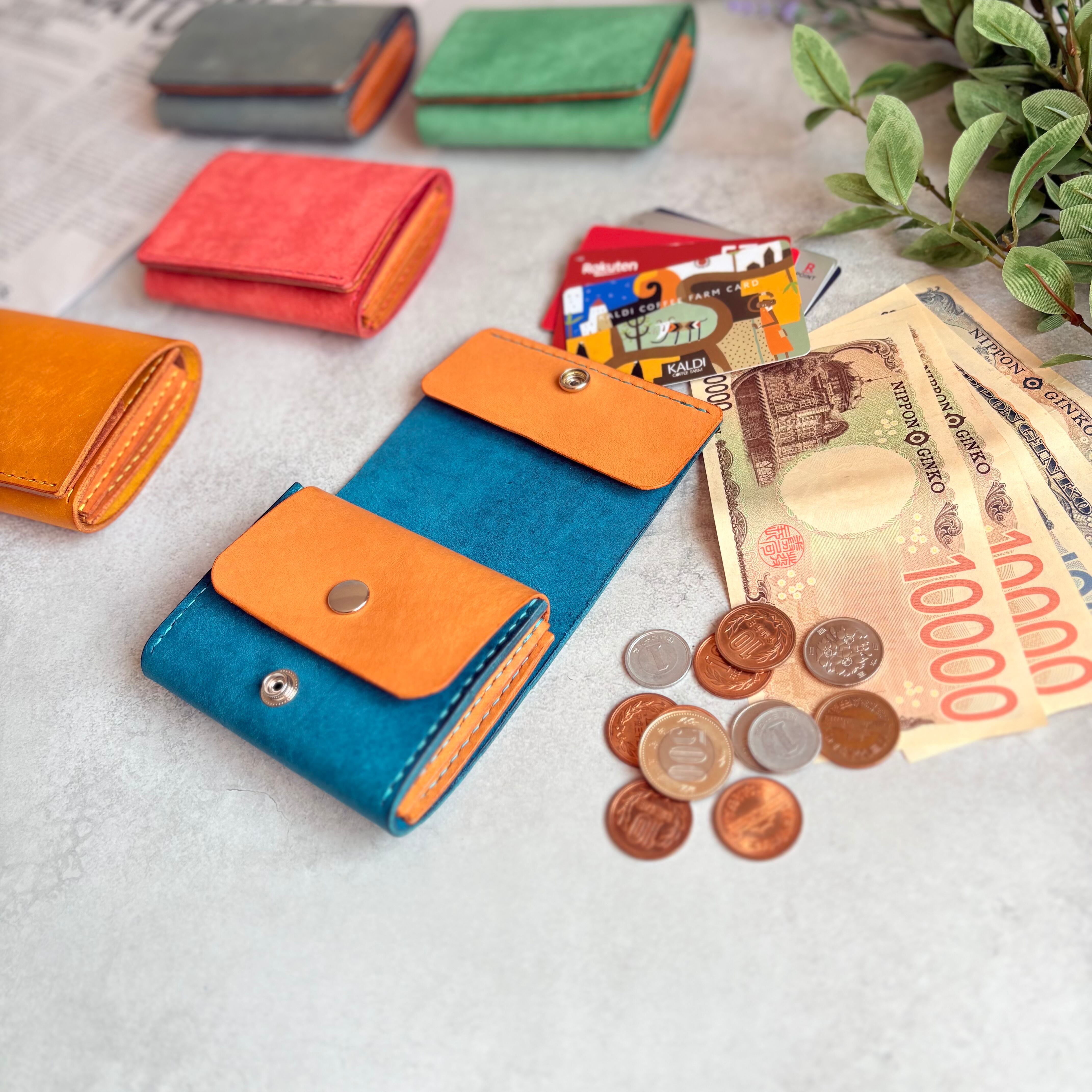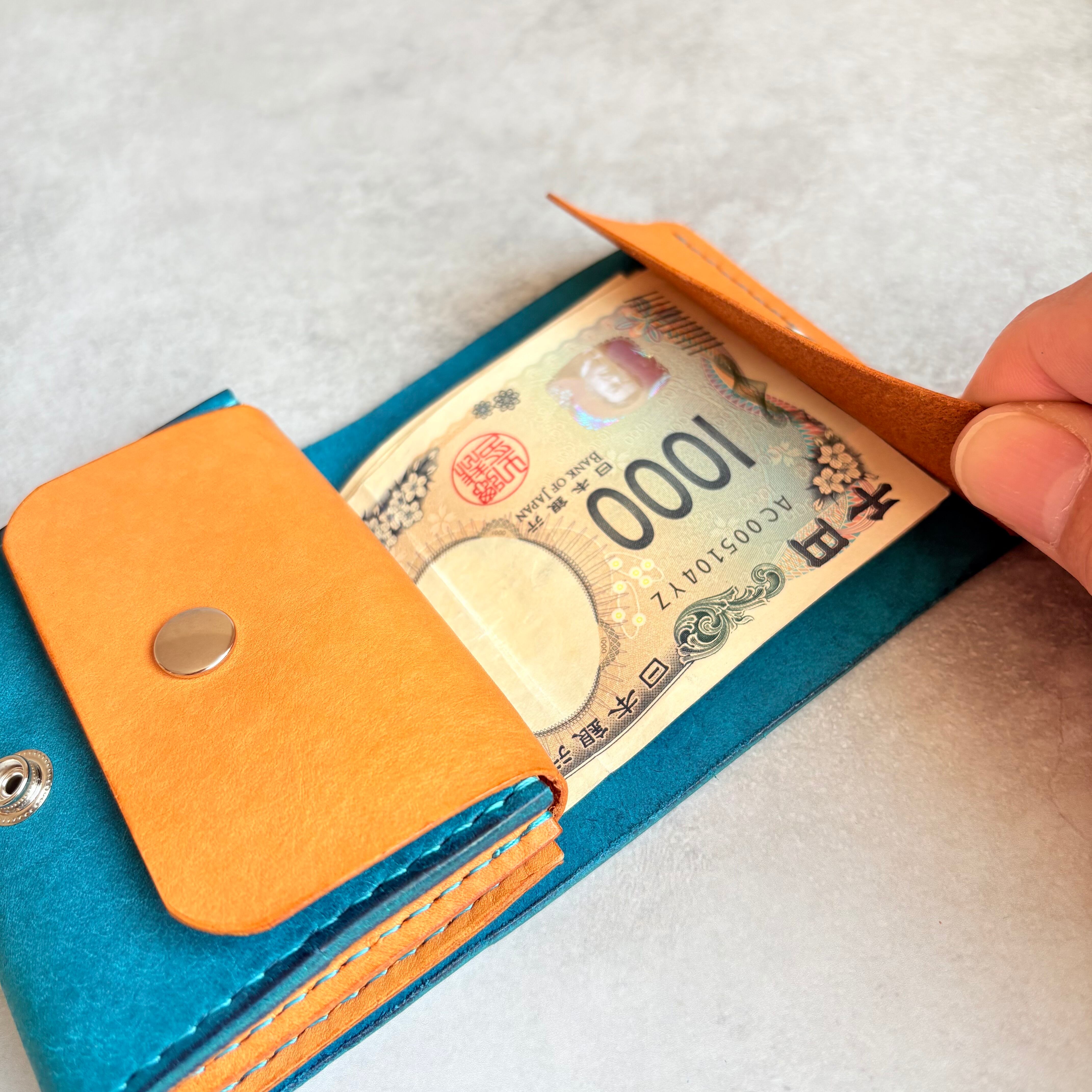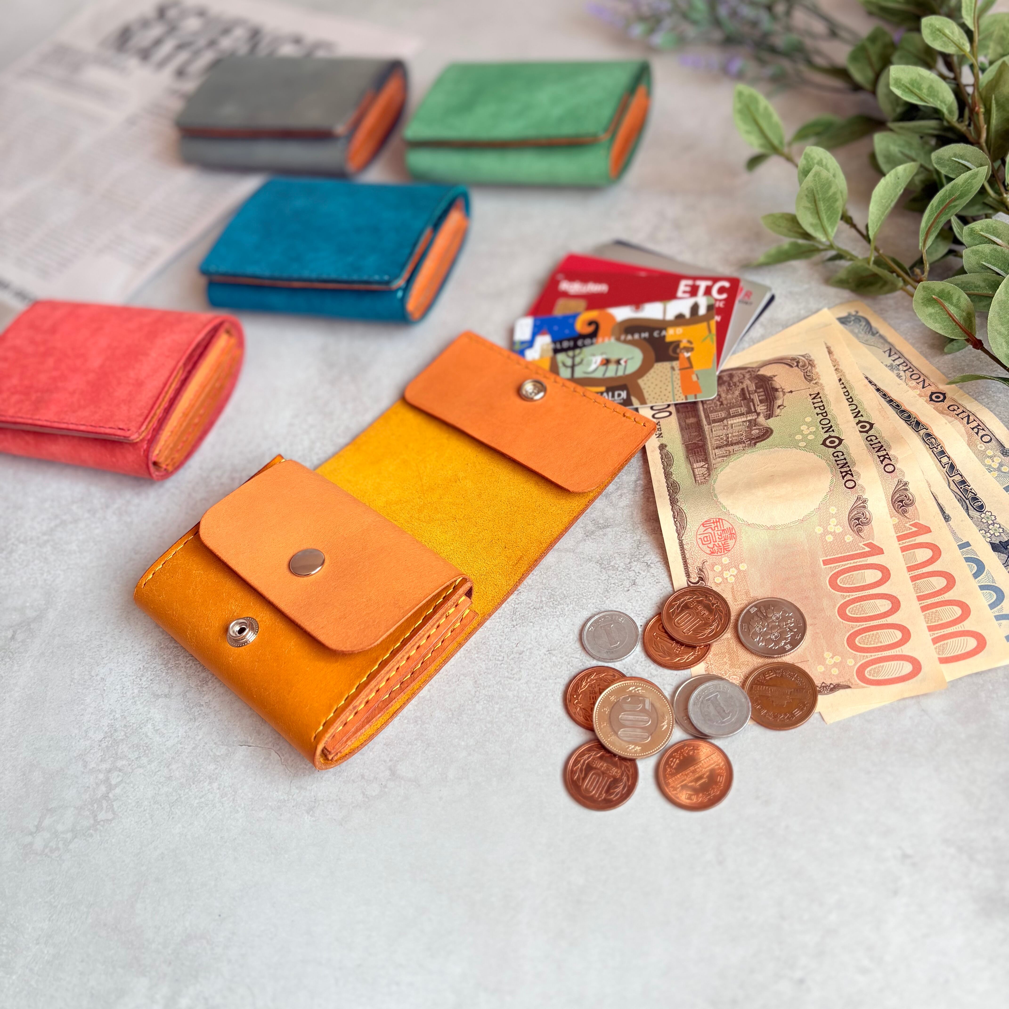 お札約20枚、小銭、キャッシュレスにも対応できるように約10枚のキャッシュカードが収納できタップリ収納して頂けます。